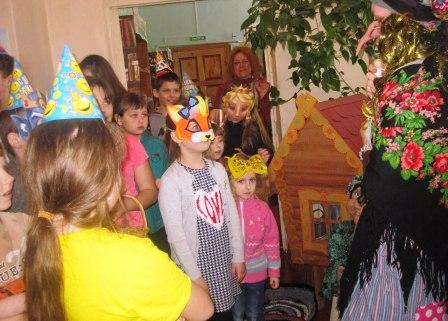 Ребята, чтобы попасть на день рождения Книги, прошли через несколько преград. Гостей встречали герои из сказки о домовёнке Кузе. Сам Кузя приготовил сюрприз для ребят, они должны были отыскать сундук со сказками. Как только они справились с этим заданием, Домовёнок предложил детям угадать, кому принадлежат сказочные предметы. Ребята с большим интересом справились и с этим заданием. А дальше они повстречались с Бабой-Ягой, которая решила запутать следы, чтоб ребята опоздали на праздник, но ребята быстро справились с её уловками. «Хлопнем дружно, раз, два, три. Сказка, дверь нам отвори!» - так началось загадочное путешествие с препятствиями: с переправами по мостику, прыжками через кочки, решением загадок, ответами на вопросы из известных сказок. Дальше гости праздника отправились к девочке Наташе, которая предложила найти аленький цветочек. И как только ребята дружно его отыскали, Наташа дала новое задание, ребята в игровой форме работали с книгам , отвечали на каверзные вопросы, показывая свою эрудицию. Затем ребята попали в сказочный лес, где им пришлось разбудить Лешего. Постарались правильно назвать сказки, которые перепутала Баба-Яга.