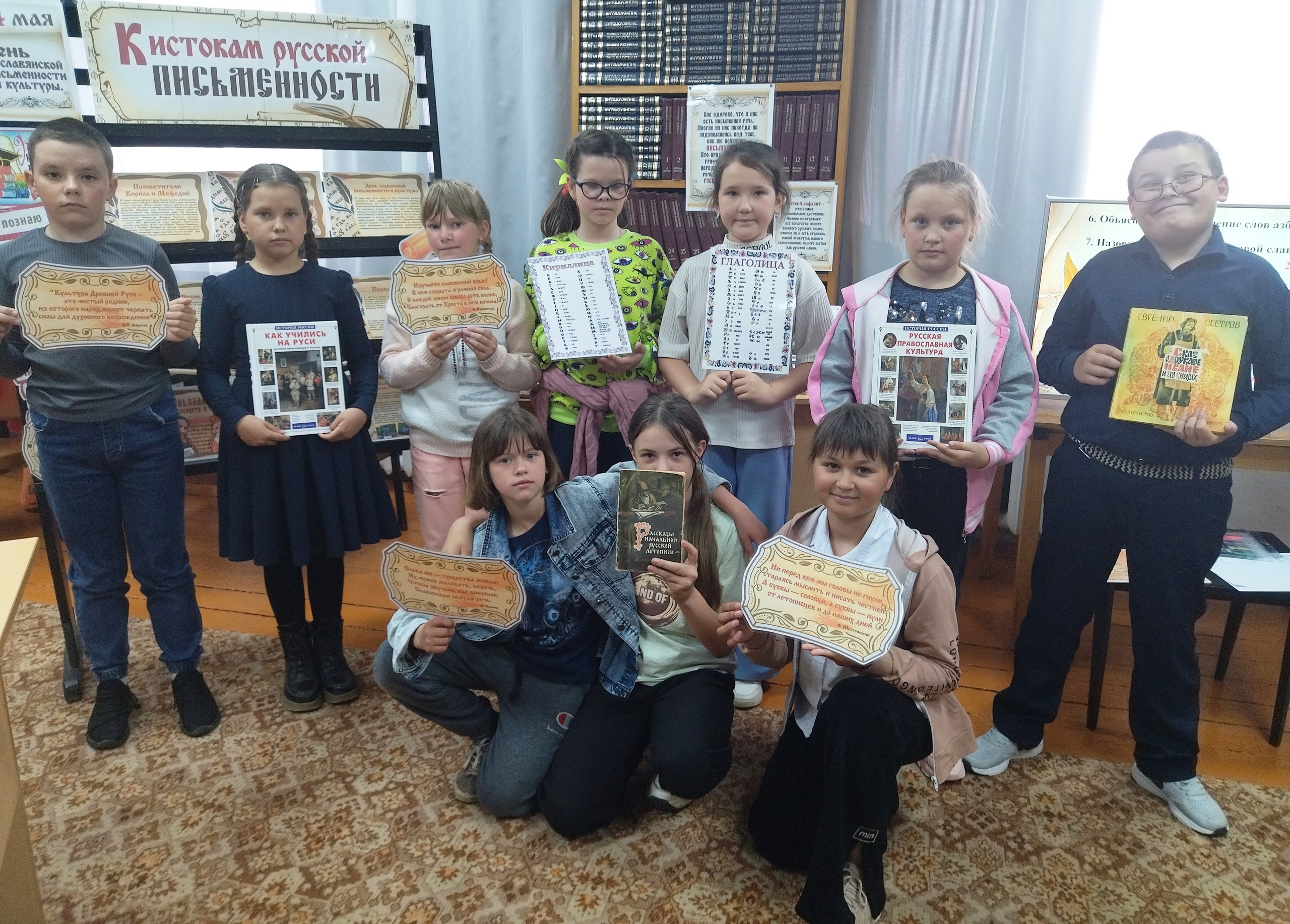 В библиотеке к данному событию была оформлена тематическая выставка-экспозиция, где были представлены материалы о жизни и деятельности великих просветителей славян — святых равноапостольных Кирилла и Мефодия, а также первых русских книжников – «К истокам русской письменности».